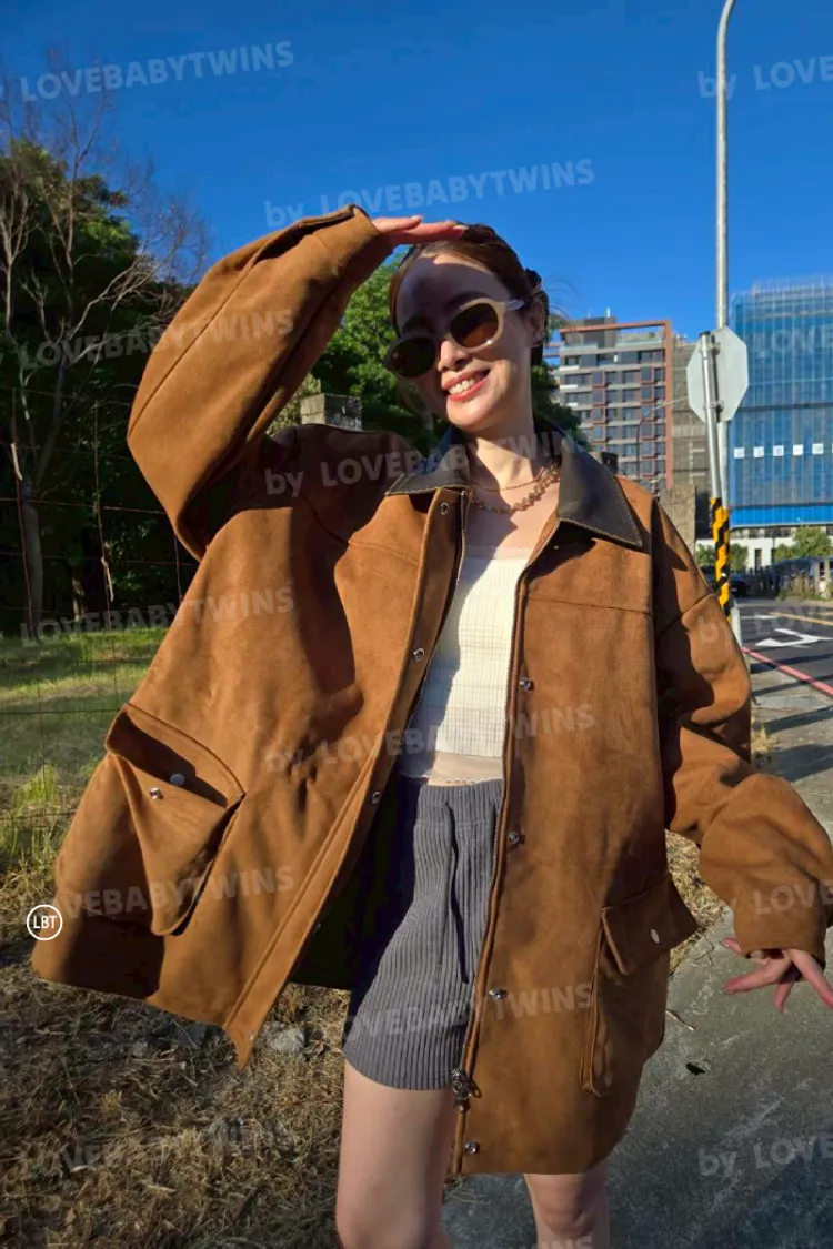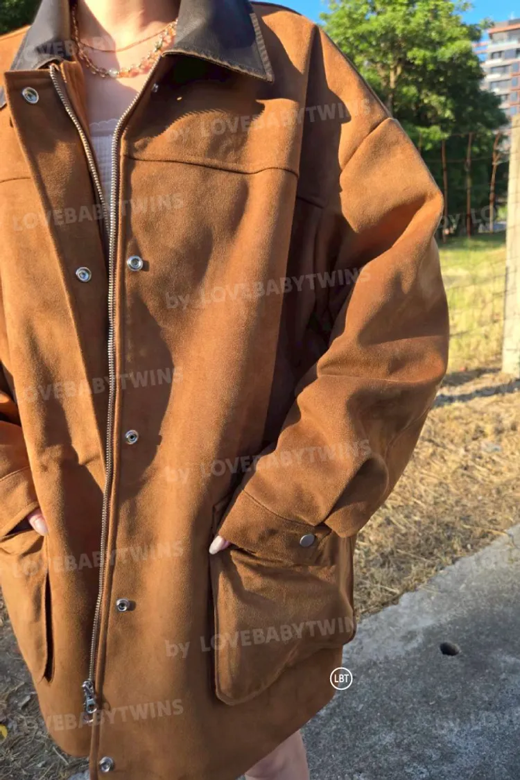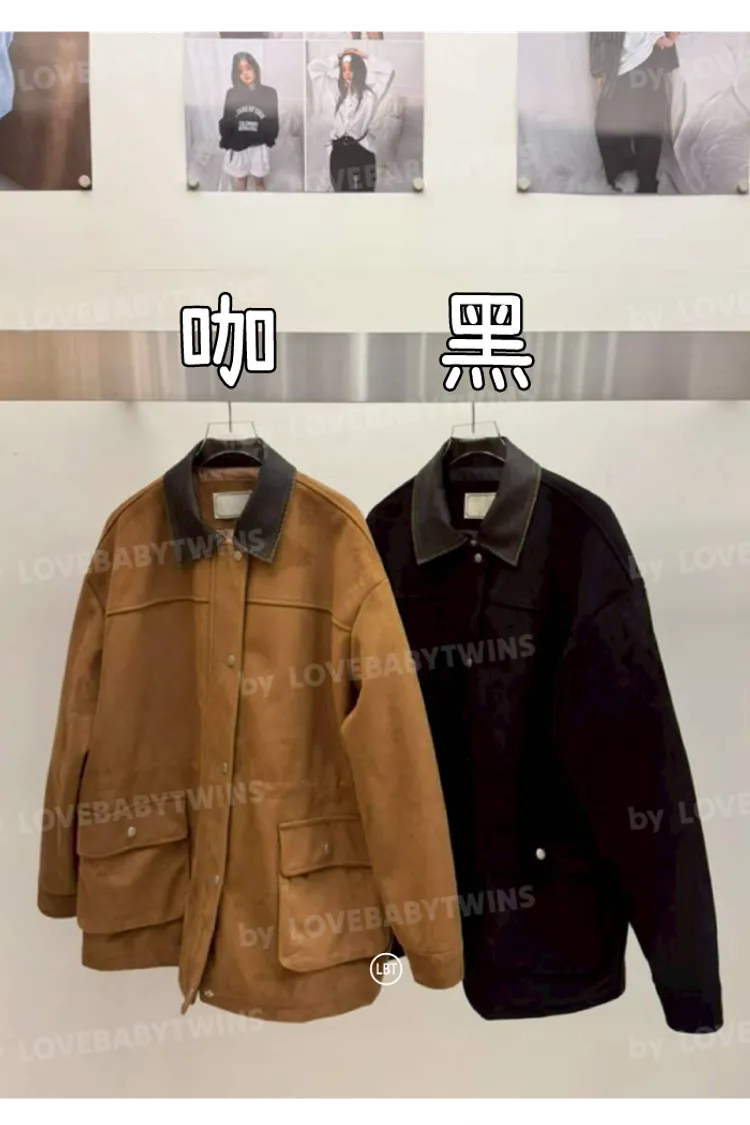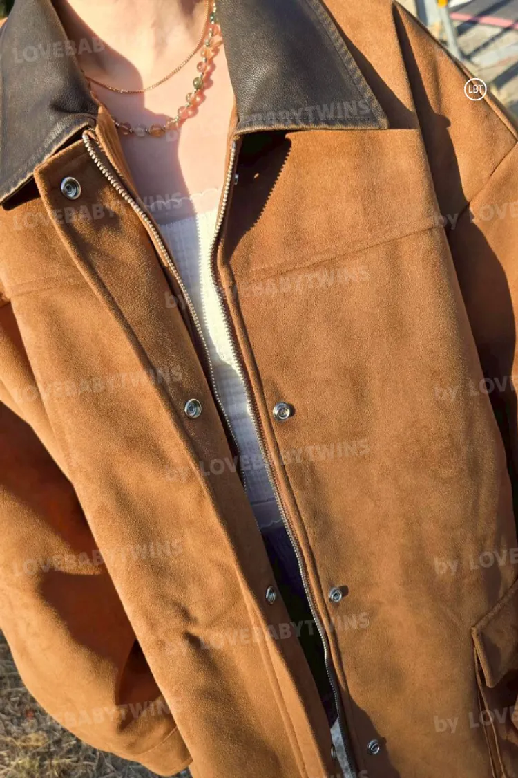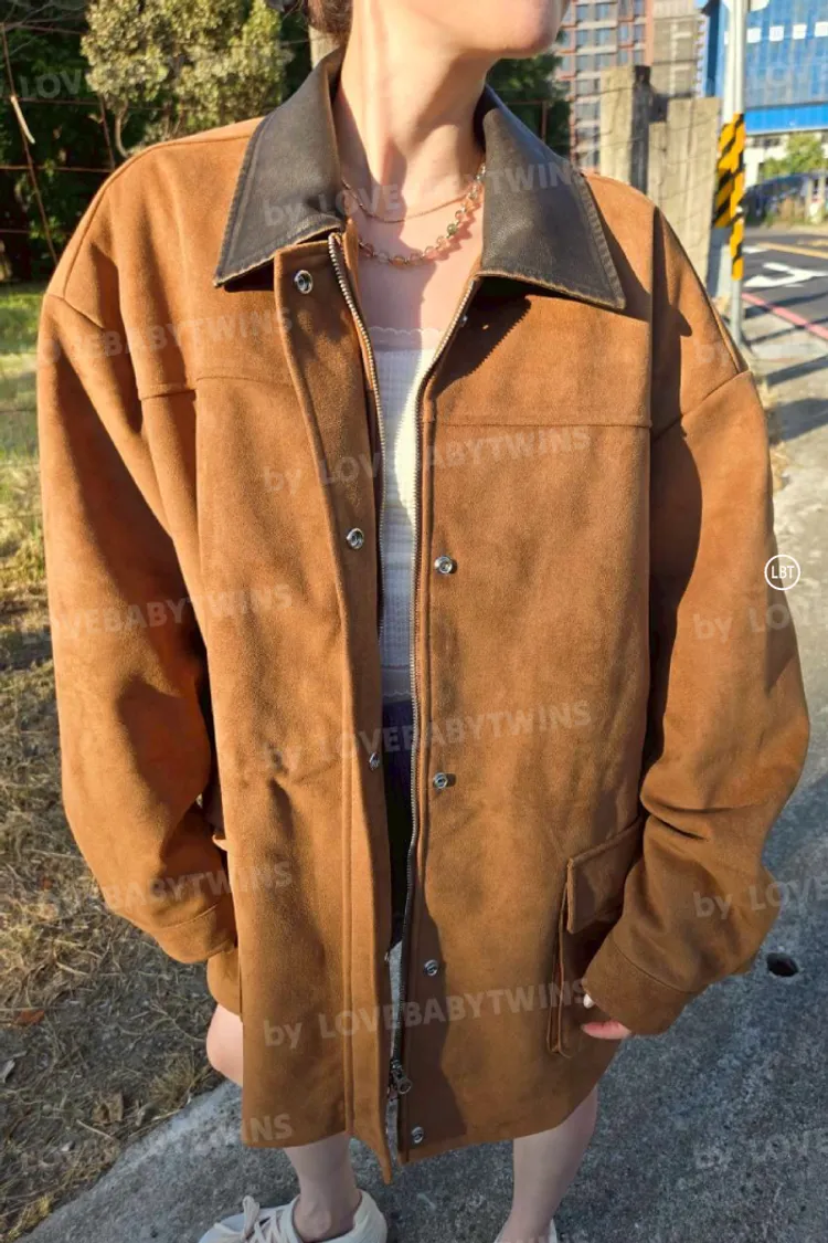 【KH22】仿舊領麂皮拼接工程外套